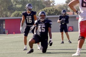 SWC demonstrated that sometimes the best offense is a great defense. Aggressive play on the defensive side of the ball kept the offense on the field. Defensive end Franky Olmedo forced a first quarter fumble. Moments later Brayten Silbor fired a 30-yard TD strike to freshmen wide receiver Dathan Goins.